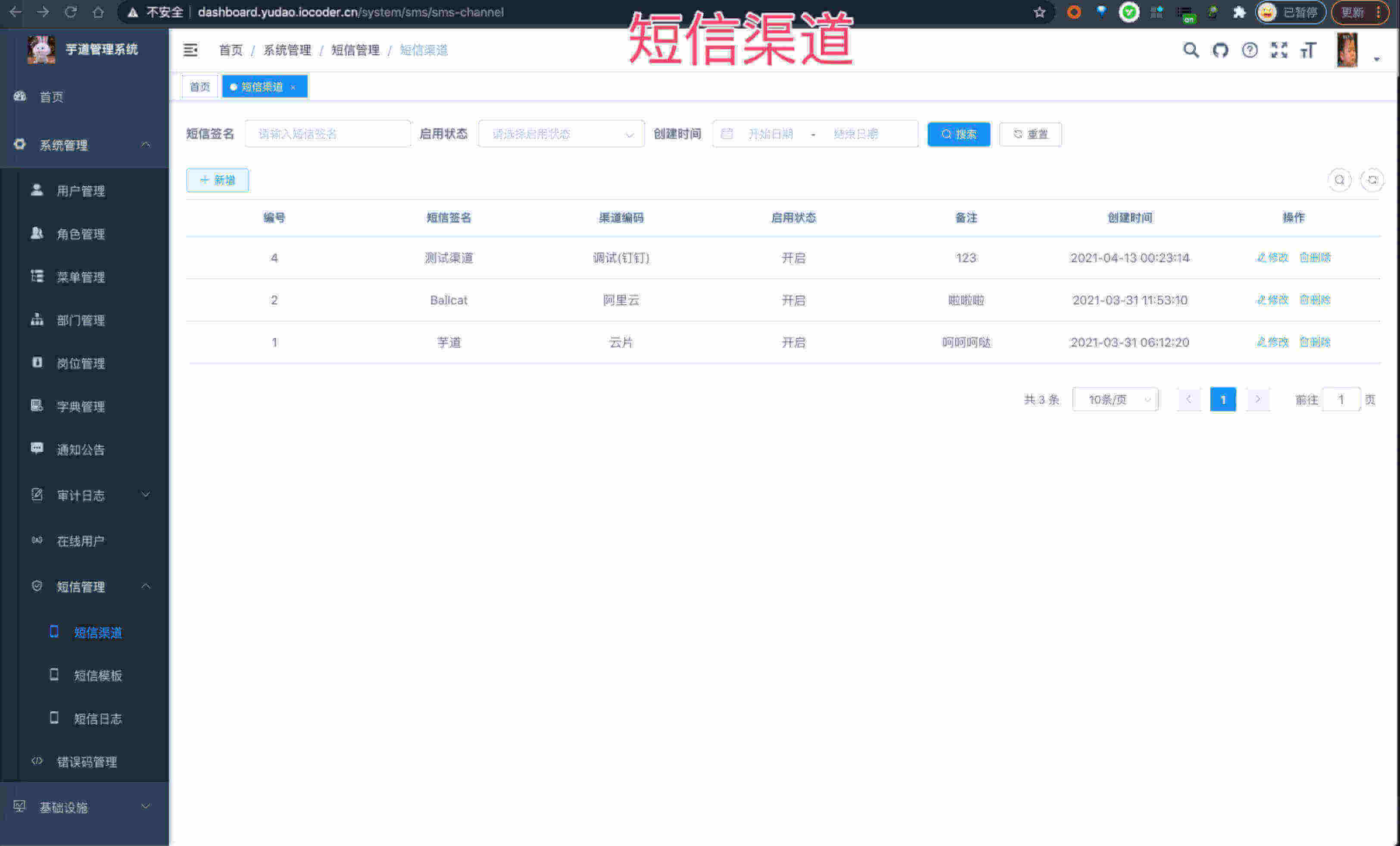 • 集成阿里云、腾讯云等短信渠道,集成 MinIO、阿里云、腾讯云、七牛云等云存储服务