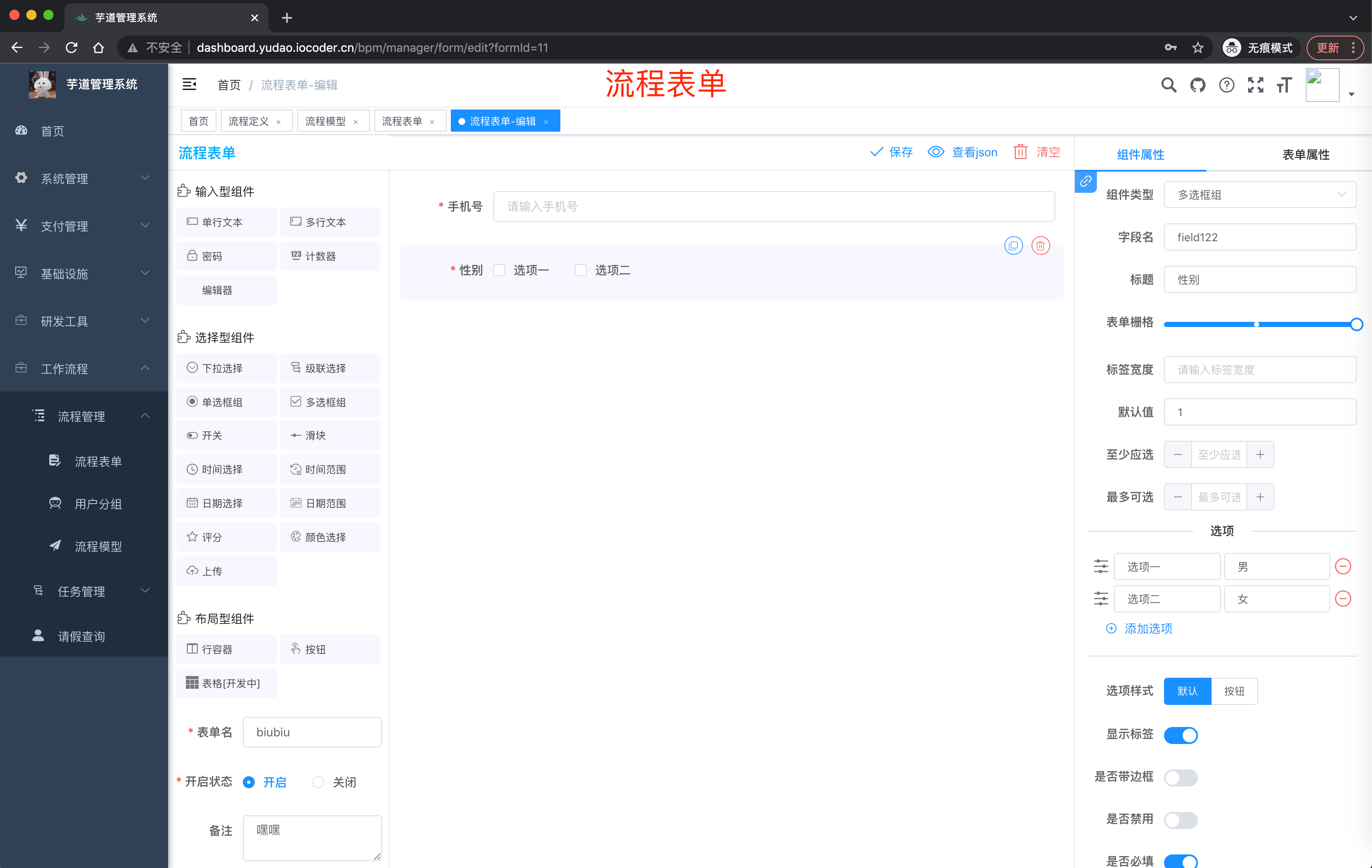 | 🚀 | 用户分组 | 自定义用户分组,可用于工作流的审批分组 |
