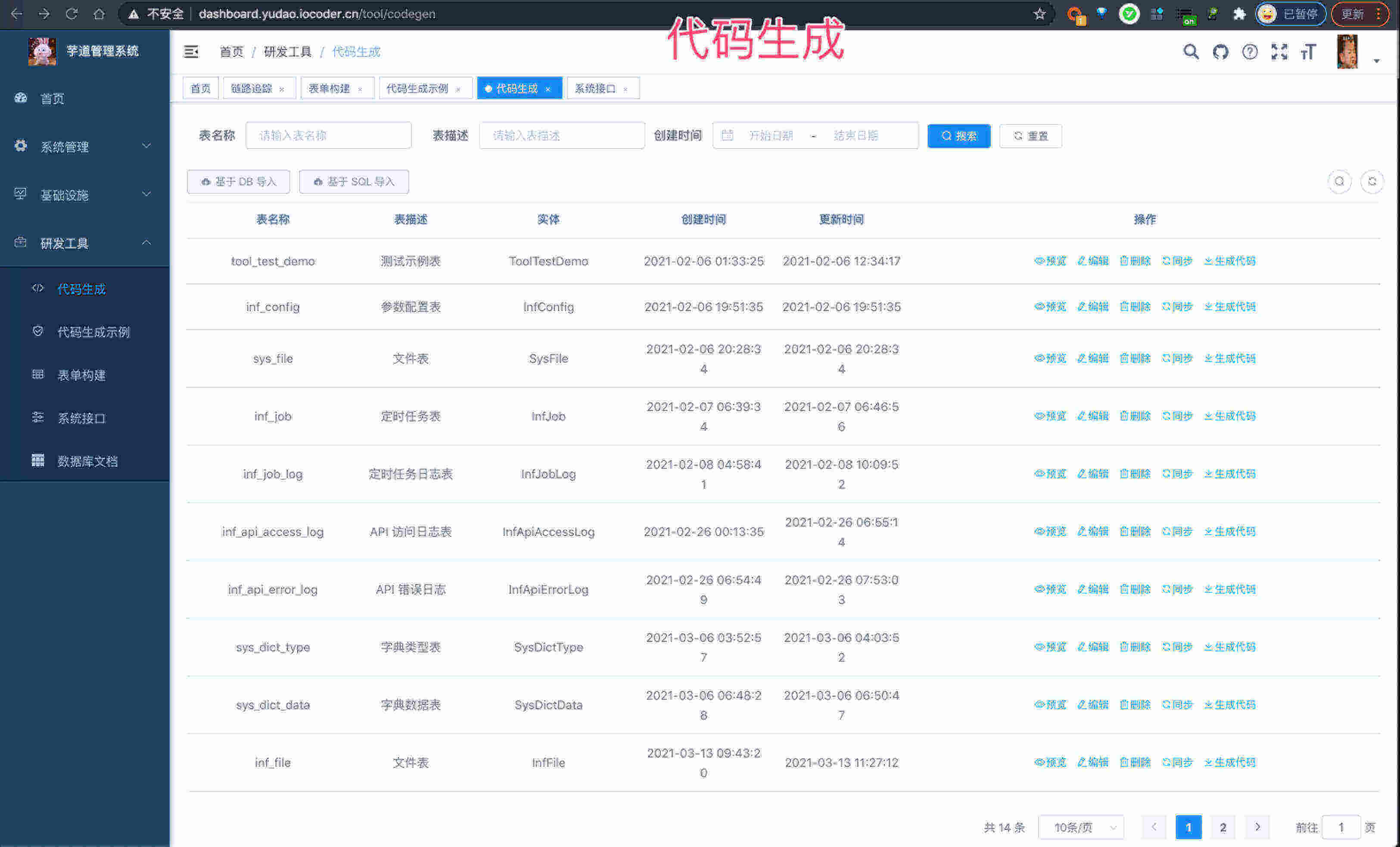 • 高效率开发,使用代码生成器可以一键生成 Java、Vue 前后端代码、SQL 脚本、接口文档,支持单表、树表、主子表