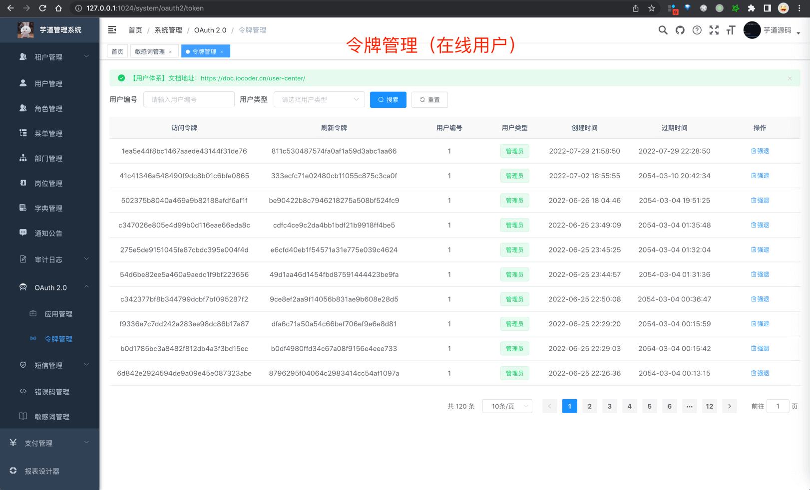 用户 & 应用 用户管理 令牌管理 应用管理