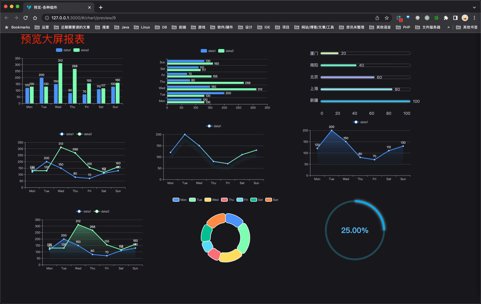 | 🚀 | 大屏设计器 | 拖拽生成数据大屏,内置几十种图表组件 |