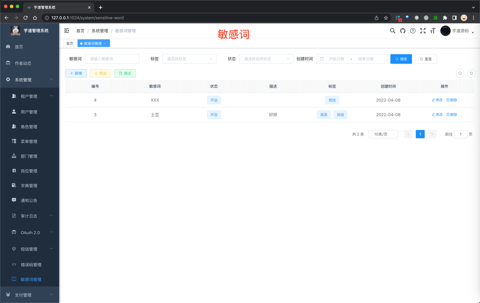 字典 & 敏感词 字典类型 字典数据 敏感词
